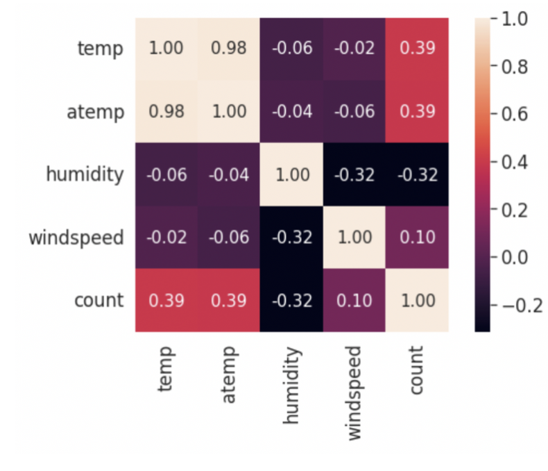 cols = ["temp", "atemp", "humidity", "windspeed", "count"]