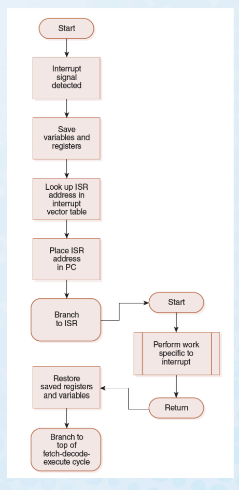 • The particular code that is executed whenever an interrupt occurs is determined by a set of addresses called interrupt vectors that are stored in low memory.