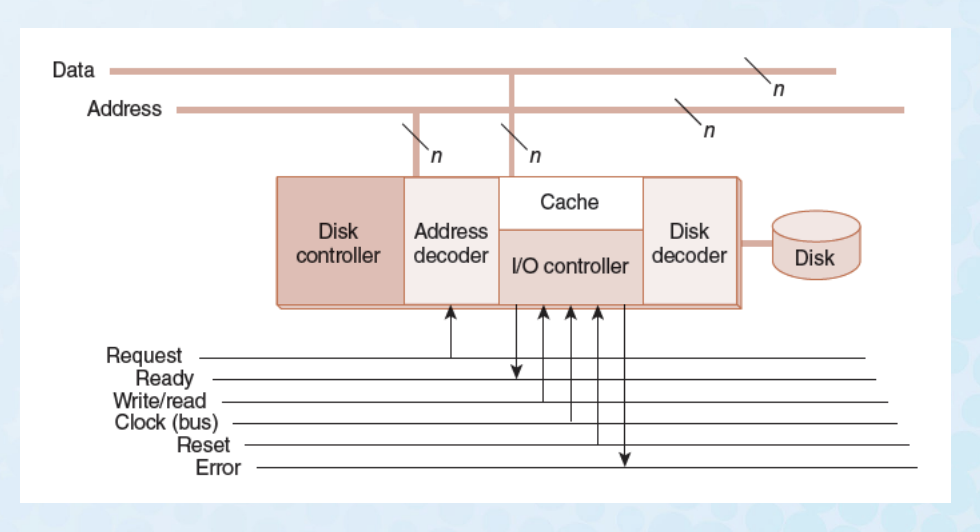• I/O systems consist of memory blocks, cabling, control circuitry, interfaces, and media.