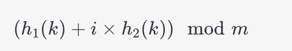더블 해싱을 사용하여 i번째 슬롯 위치를 찾는 일반적인 공식은 다음과 같습니다: