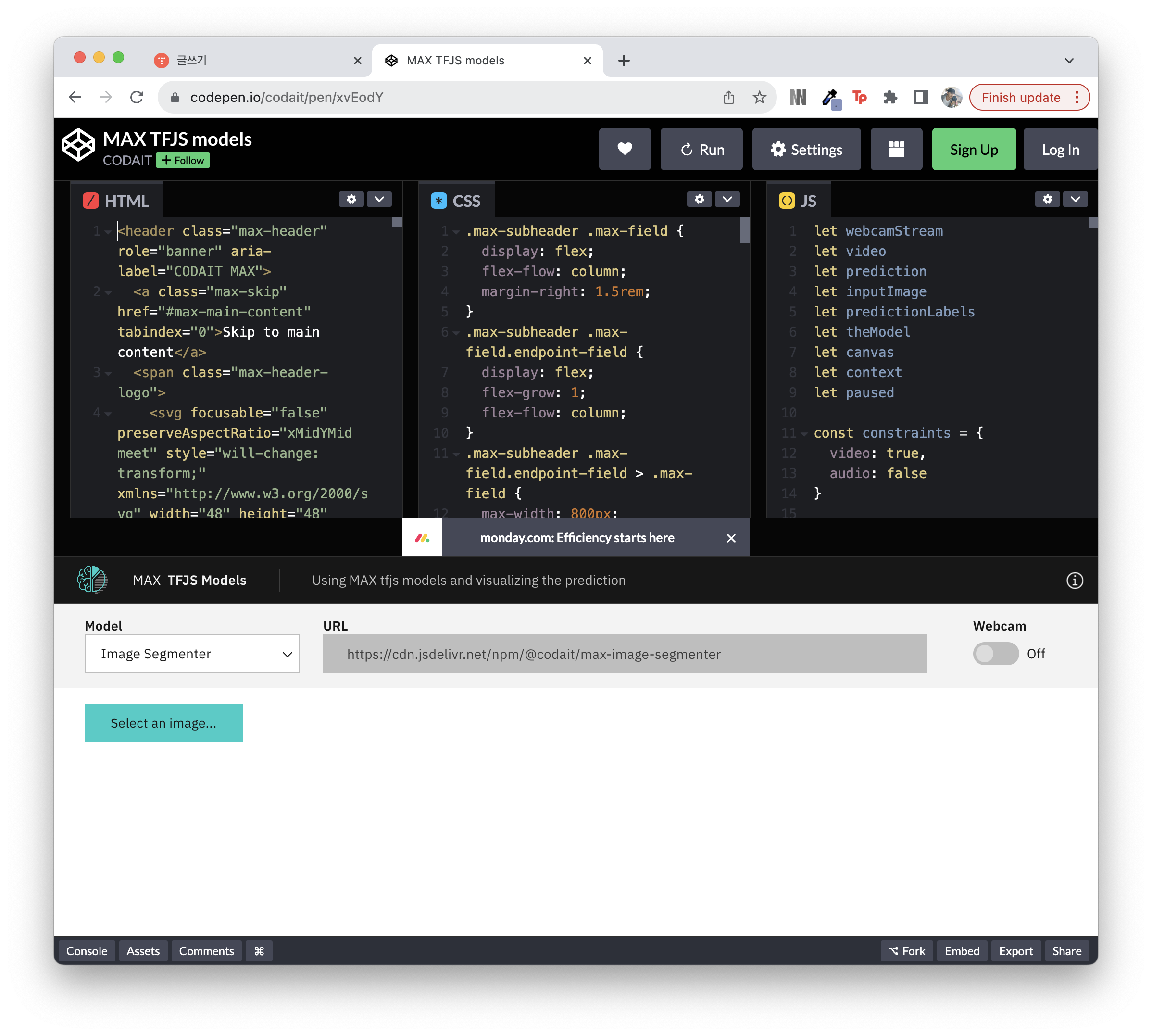 Test the model in CodePen (using MAX TFJS models).