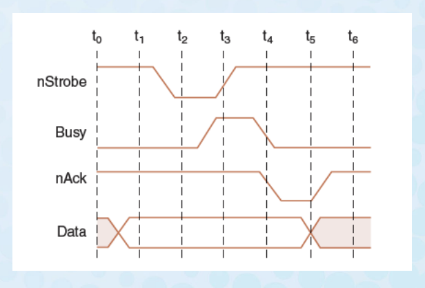 – Parallel data transmission for a printer resembles the signal protocol of a memory bus: