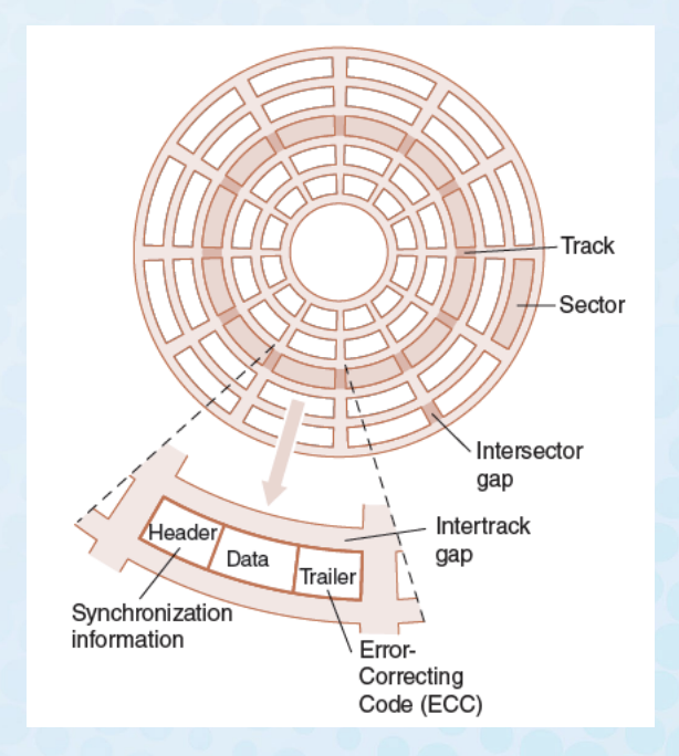 • Disk tracks are numbered from the outside edge, starting with zero.