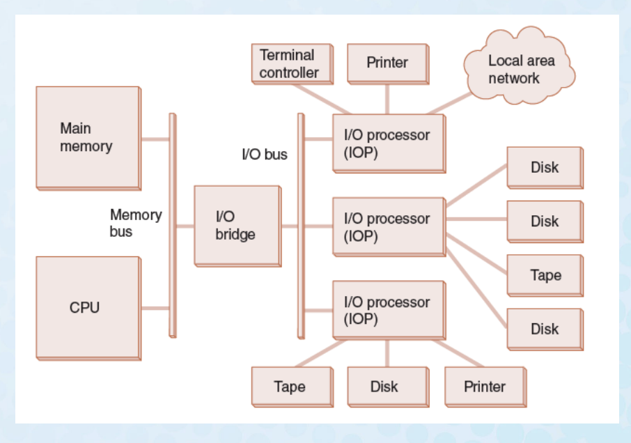 • The IOP negotiates protocols, issues device commands, translates storage coding to memory coding, and can transfer entire files or groups of files independent of the host CPU.